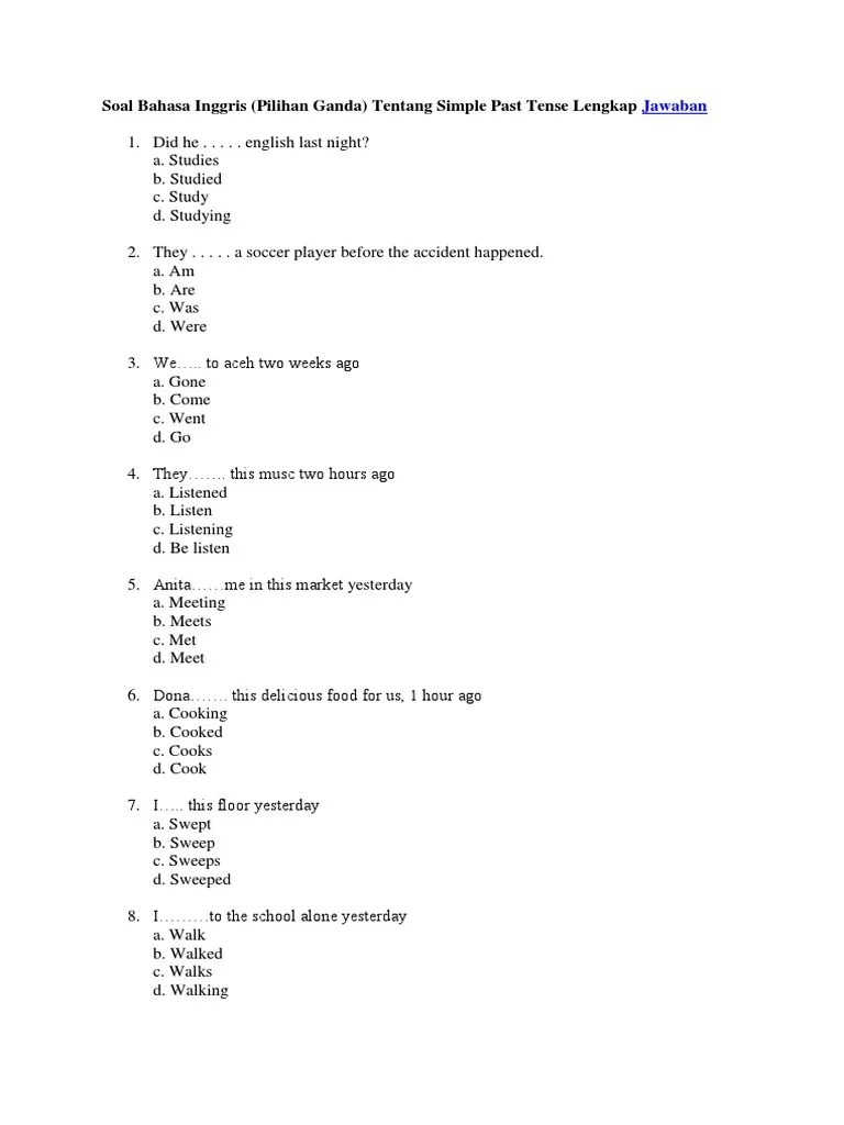 Contoh soal simple present tense pilihan ganda. Soal simple present tense dan pembahasan lengkap, contoh soal pilihan ganda,. Contoh soal latihan simple present tense pilihan ganda dan jawabannya. Dalam contoh soal present tense yang akan saya berikan, bentuk soal adalah pilihan ganda, dengan jumlah soal sebanyak 10 butir soal. 40 soal pg simple present tense dilengkapi dengan kunci jawaban dan dapat di.